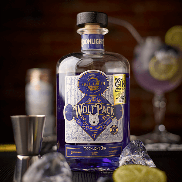Moonlight Gin, cel de-al doilea produs din gama de ginuri al distileriei noastre, este un gin remarcabil prin prezenta lui, distilat sub clar de luna plina din 15 plante atent selectionate. in reteta creata cu mare grija putem regasi note de coacaze negre, vanilie, scortisoara, piper roz, ghimbir, iris florentin si grauntele paradisului. Culoarea spectaculoasa de albastru ultramarin se obtine prin infuzarea cu flori de Clitoria Ternatea, fara absolut nici un pic de colorant artificial. Moonlight Gin ne incanta vizual si cu un mic “spectacol de magie” atunci cand este mixat intr-un gin tonic, el trece magic de la culoarea albastru ultramarin la un spectaculos violet deschis.